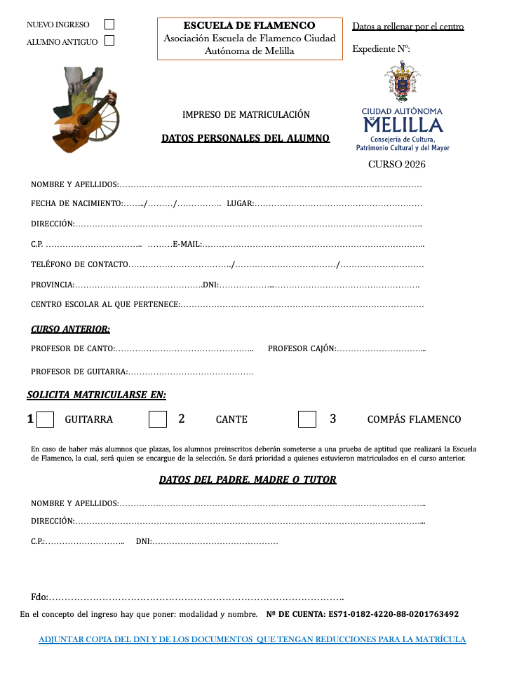 En los enlaces de abajo podrás descarga el impreso de matriculación en varios formatos y opciones para el curso 2026